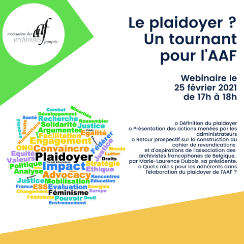 o Retour prospectif sur la construction du cahier de revendications et d’aspirations de l’association des archivistes francophones de Belgique, par Marie-Laurence Dubois, sa présidente.