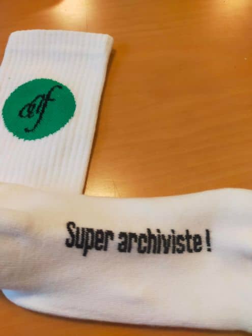- Et n’hésitez pas à contacter l’AAF : il nous reste des chaussettes « AAF – super archiviste », des mugs AAF ou encore du cidre et quelques marinières Armor Lux « Archiviste ! » : secretariat@archivistes.org