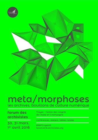 L’affiche, conçue comme une porte d’entrée sur un nouveau monde, reproduit une image en mouvement par le biais de l’art cinétique. Les graphistes ont voulu rendre compte ainsi de la mise en abîme propre au sujet abordé de l’archivage numérique et l’utilisation d’une encre fluo renforce l’impression de trouble, de vertige.