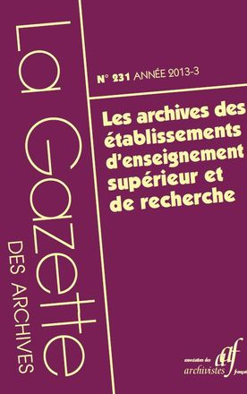 Le secteur de l’enseignement supérieur et de la recherche a connu en une décennie une expansion sans précédent, une sorte de « baby-boom archivistique ». Ce volumineux numéro de La Gazette des archives, en grande partie réalisé par les membres de la section Aurore de l’AAF – archivistes des universités, rectorats, organismes de recherche et mouvements étudiants – en témoigne éloquemment.