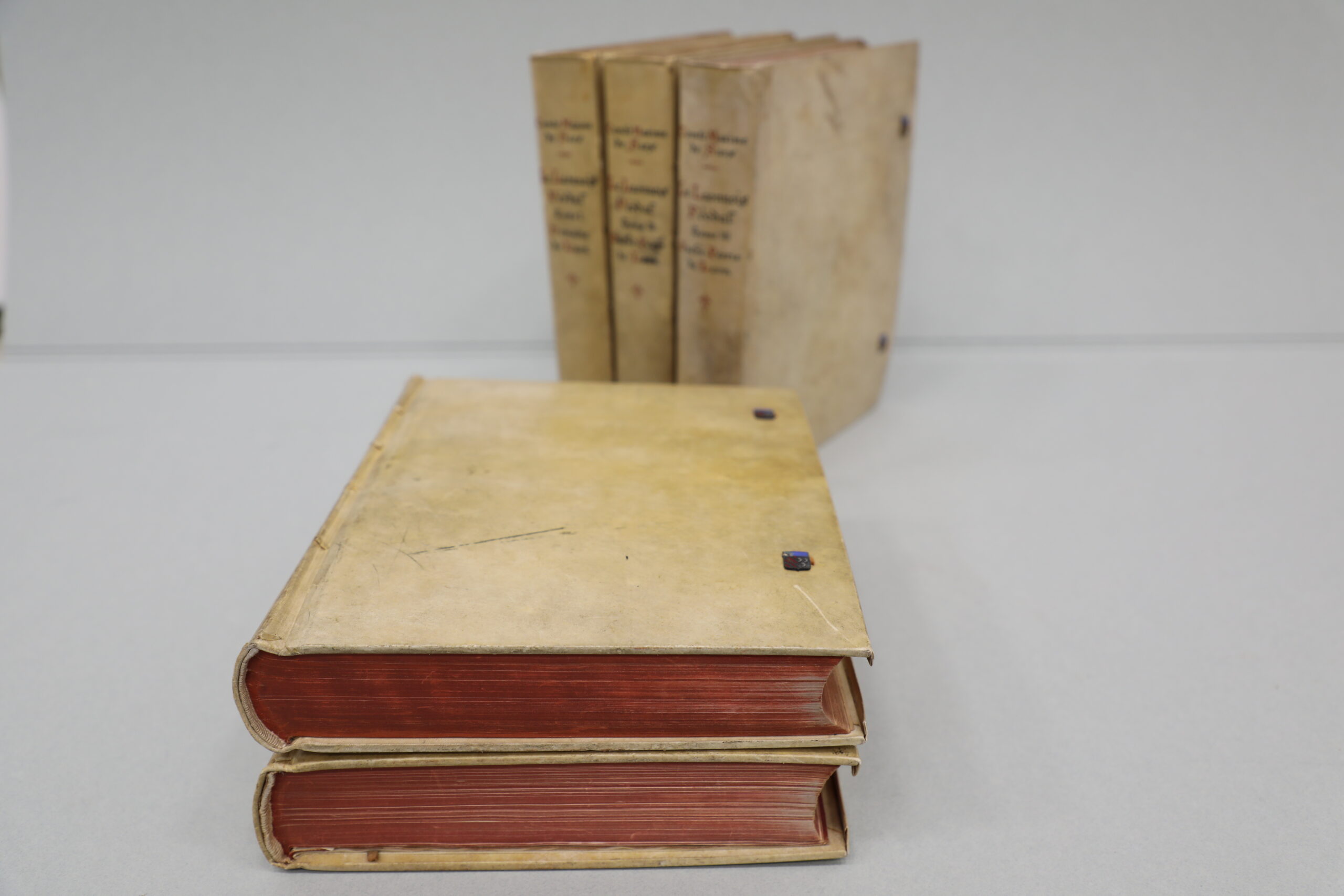 Parfait exemple d’un ouvrage d’érudition soigneusement et méticuleusement établi par son auteur, les tomes sont organisés par seigneuries, en commençant par le domaine royal et les propriétés de l’évêque, duc et pair de Laon. L’exemplaire conservé par les Archives départementales a été déposé par Bruno Billon, descendant de Maxime de Sars : il s’agit d’une édition originale de 1924, ce qui la rend particulièrement précieuse. Les cinq tomes disposent d’une reliure en parchemin, marquée sur la couverture des armoiries de la famille de l’auteur.