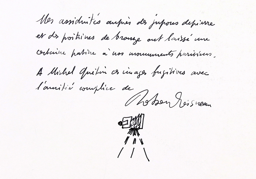 Baquet (Maurice) et Doisneau (Robert), Ballade pour violoncelle et chambre noire, Paris, éd. Herscher, 1981. Cote : [10 BIB 343] Légendes associées : 1. L’ouvrage Ballade pour violoncelle et chambre noire et le dossier de presse de l’exposition présentée pour sa sortie en 1981 © Arch. dép. Puy-de-Dôme, photo Géraldine Da Costa 2. Dédicace de Robert Doisneau à Michel Quétin (extrait de « Le Paris de Robert Doisneau et Max-Pol Fouchet ») © Arch. dép. Puy-de-Dôme, photo Géraldine Da Costa 3. L’ouvrage Ballade pour violoncelle et chambre noire et le dossier de presse de l’exposition présentée pour sa sortie en 1981 © Arch. dép. Puy-de-Dôme, photo Géraldine Da Costa 4. L’ouvrage Ballade pour violoncelle et chambre noire et le dossier de presse de l’exposition présentée pour sa sortie en 1981 © Arch. dép. Puy-de-Dôme, photo Géraldine Da Costa 5. La bibliothèque de Michel Quétin, après classement © Arch. dép. Puy-de-Dôme, photo Géraldine Da Costa 6. La bibliothèque de Michel Quétin, après classement © Arch. dép. Puy-de-Dôme, photo Géraldine Da Costa