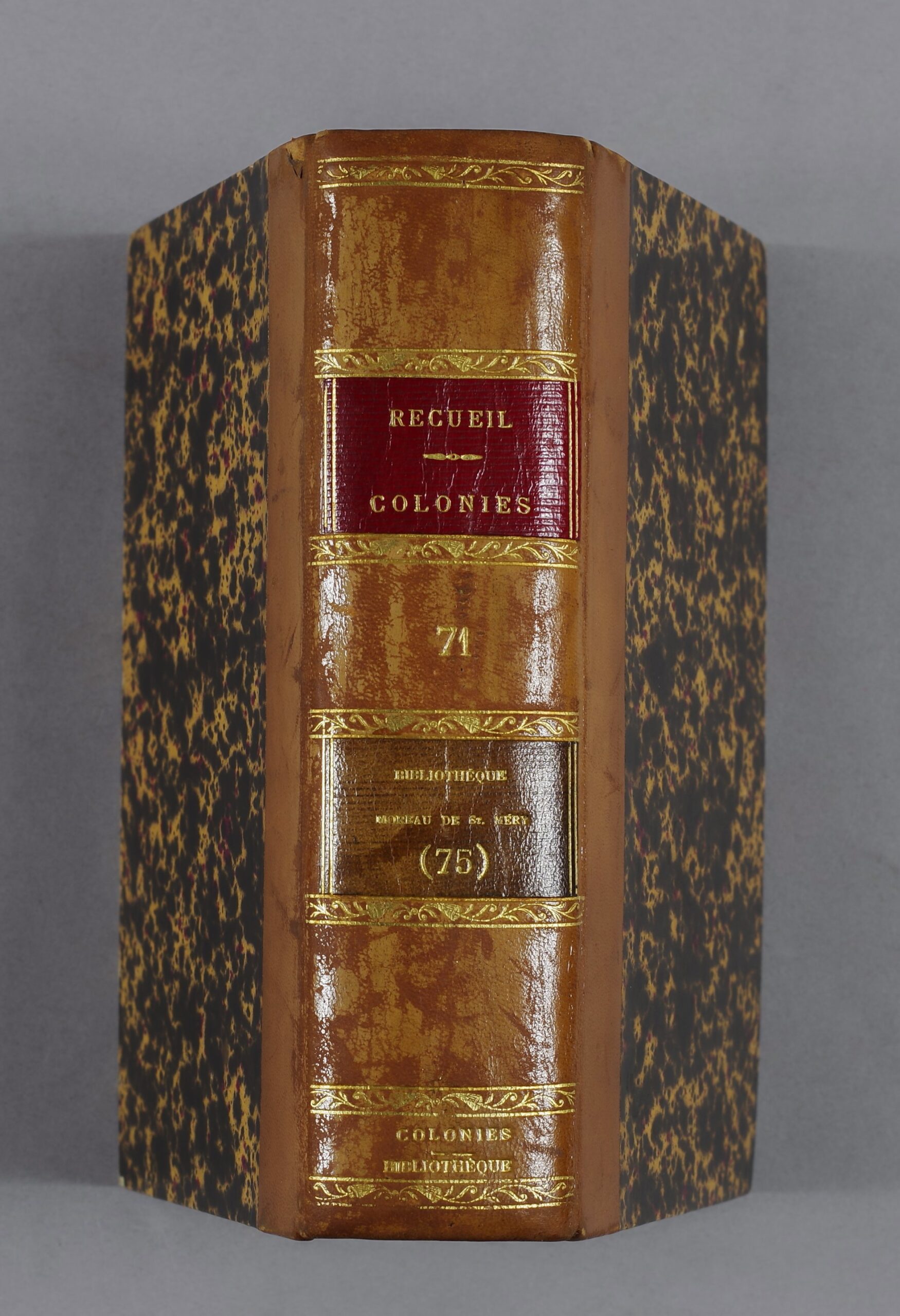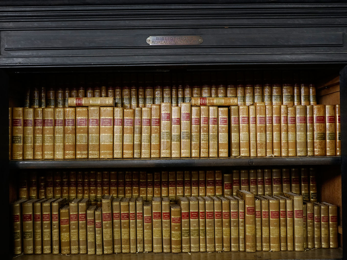 Formée de 275 volumes, la bibliothèque Moreau de Saint-Méry rassemble près de 3 000 livres, factums et libellés, textes législatifs et journaux concernant essentiellement les colonies françaises, en particulier Saint-Domingue, la Martinique et la Guadeloupe. Cet ensemble est exceptionnel par ses thématiques principales. Il se compose d’imprimés à caractère politique, philosophique ou juridique de la période de la Révolution et de l’Empire, centrés sur les problèmes coloniaux : liberté du commerce, esclavage et traite des noirs, égalité des droits des gens de couleur libres, événements militaires aux Antilles…
