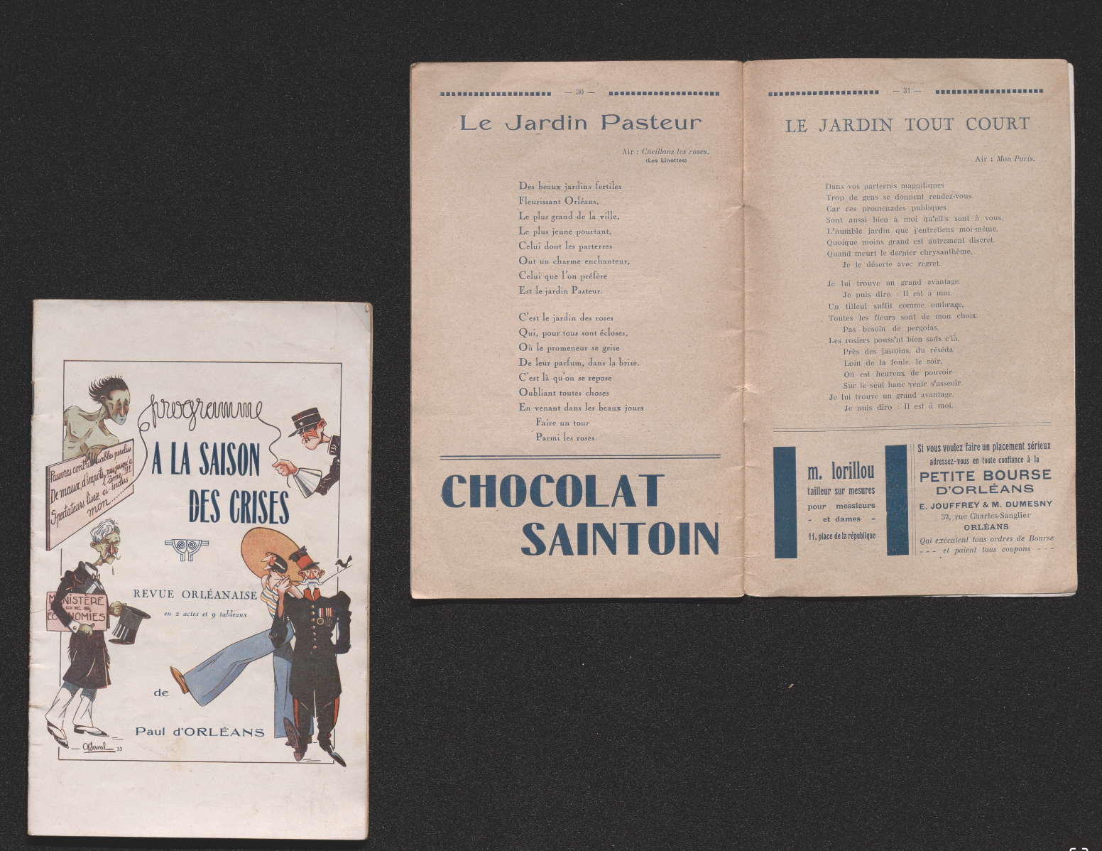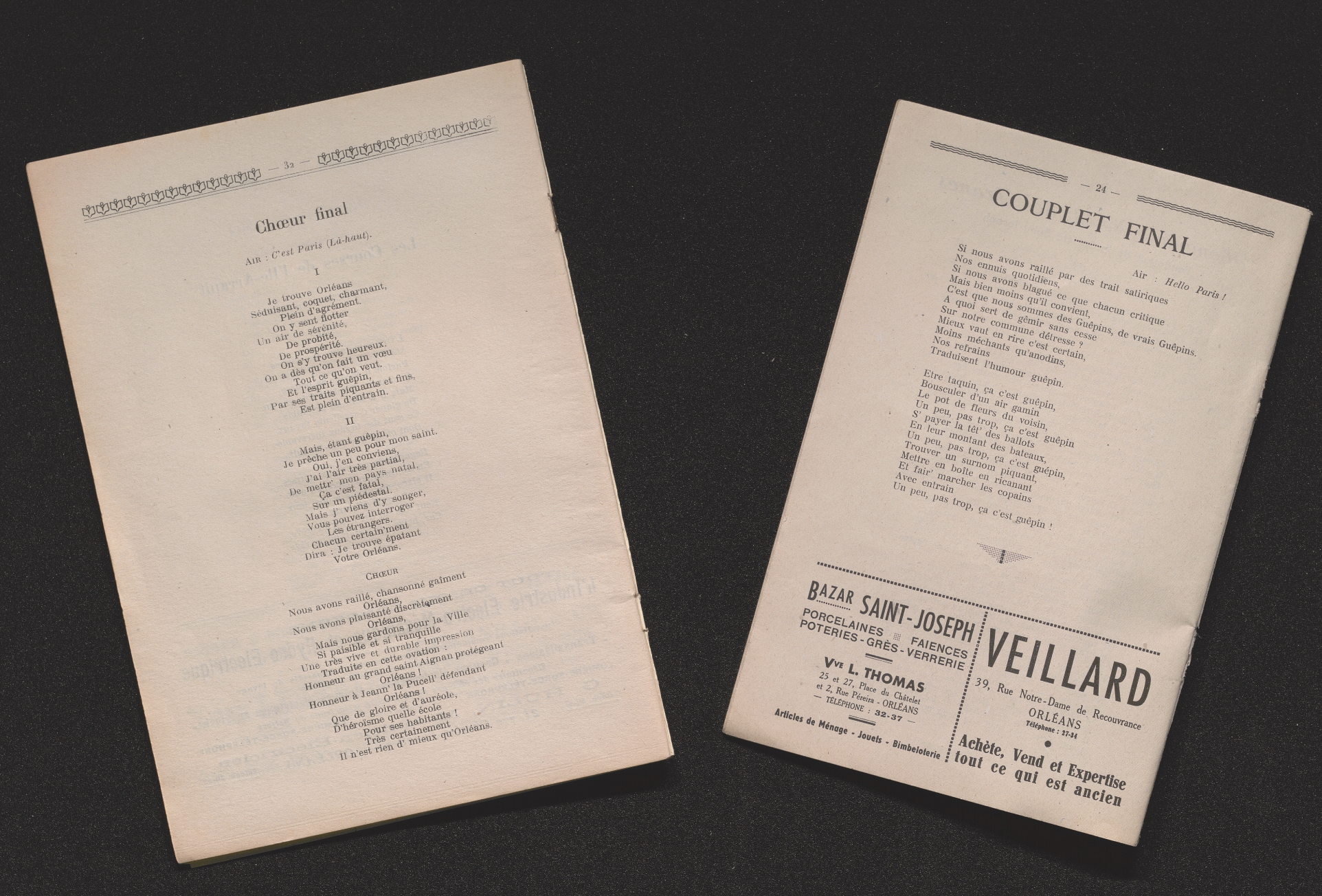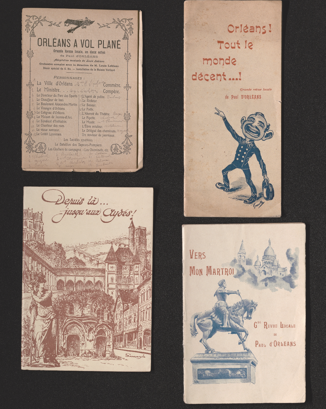 Ces neuf revues de spectacles orléanais proviennent soit d’un achat auprès d’un libraire de Blois en 2002, soit de don de particuliers. Leur collection est malheureusement lacunaire. Une étude approfondie de ces textes mériterait d’être menée en s’appuyant sur les archives.