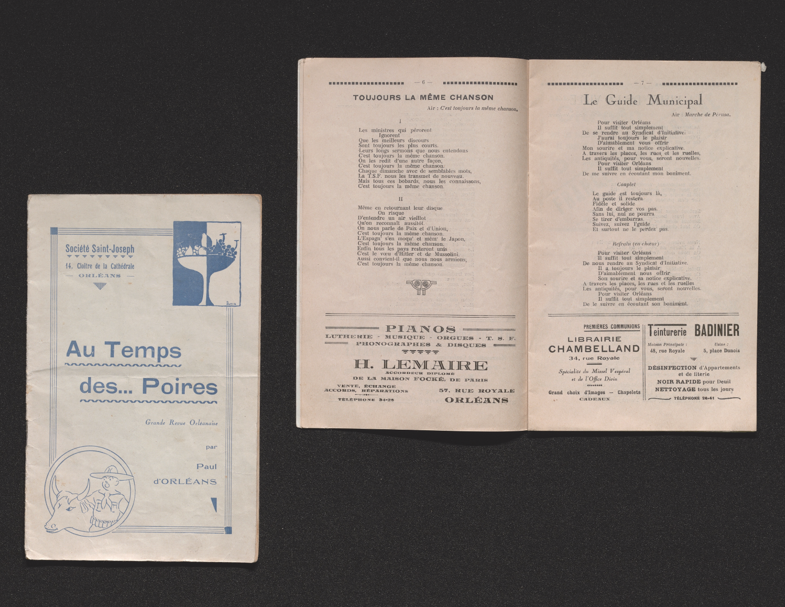 La Bibliothèque des Archives d’Orléans conserve neuf brochures de ces grandes revues locales présentées entre 1911 et 1946.