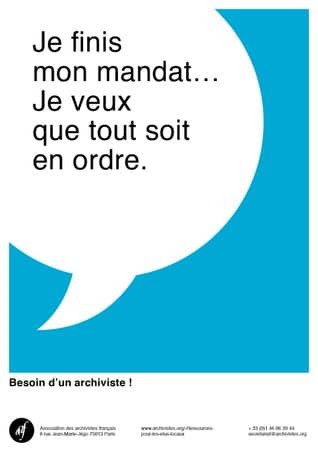 L’AAF a créé plusieurs affiches pour vous aider à sensibiliser vos élus à la bonne gestion de leurs archives, particulièrement durant les périodes pré-électorales.